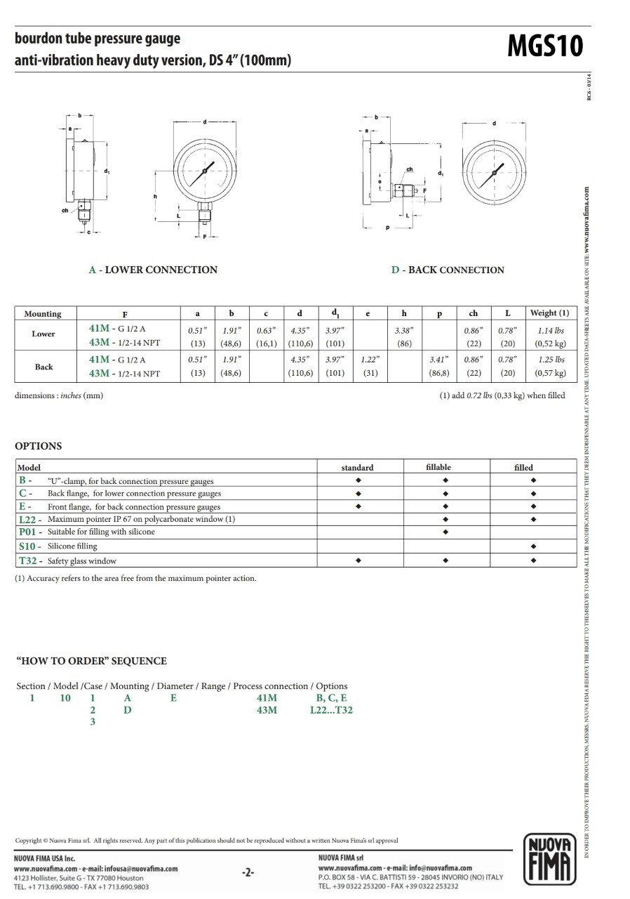 NUOVA FIMA PRESSURE GAUGE DS100 , Copper