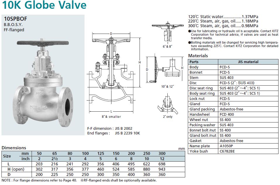 KITZ DUCTILE IRON GLOBE VALVE 10SPBOF
