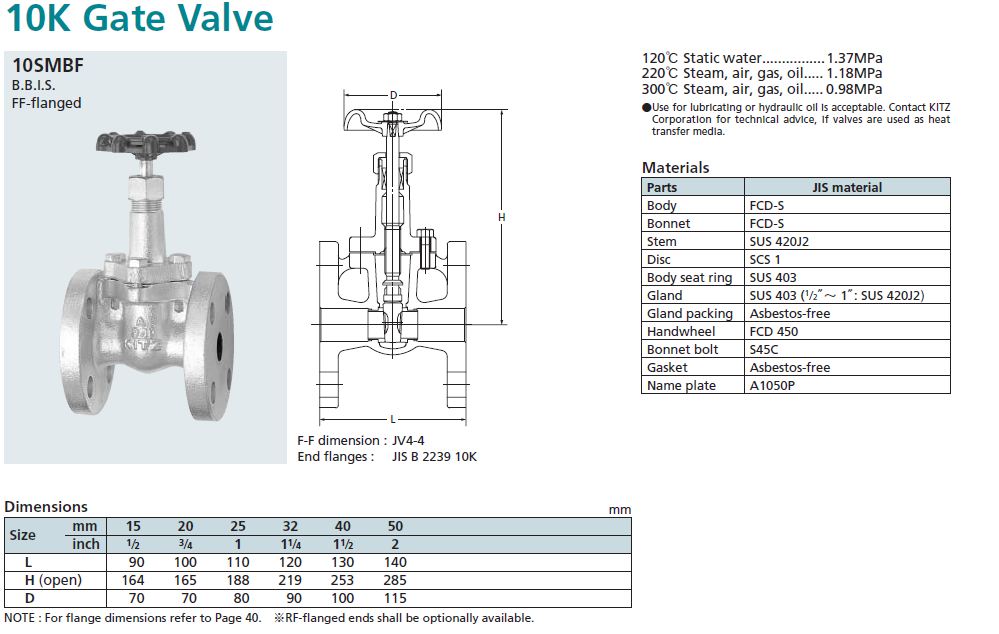"KITZ" DUCTILE IRON GATE VALVE 10SMBF