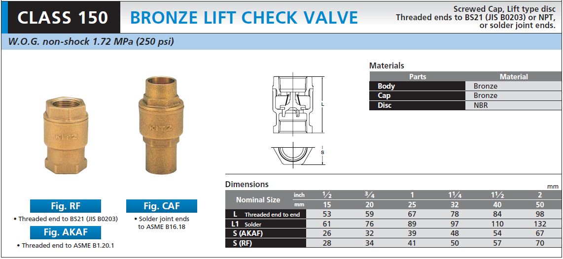 KITZ BRASS SPRING CHECK VALVE 150RF