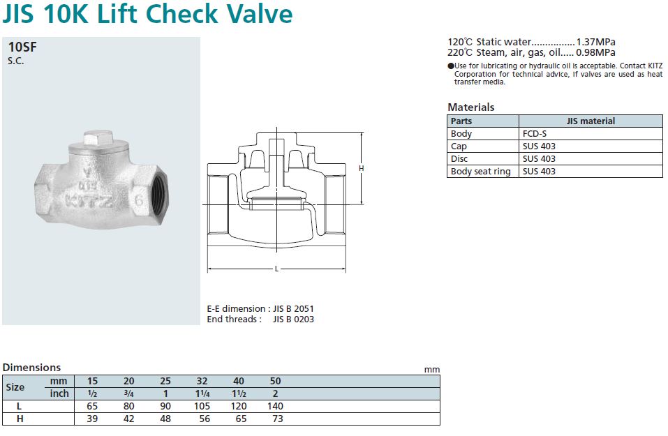 "KITZ" DUCTILE IRON LIFE CHECK VALVE 10SF