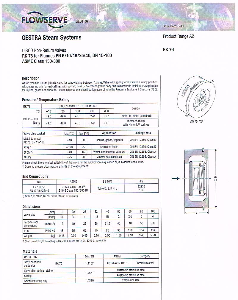 GESTRA WAFER CHECK VALVE RK 76