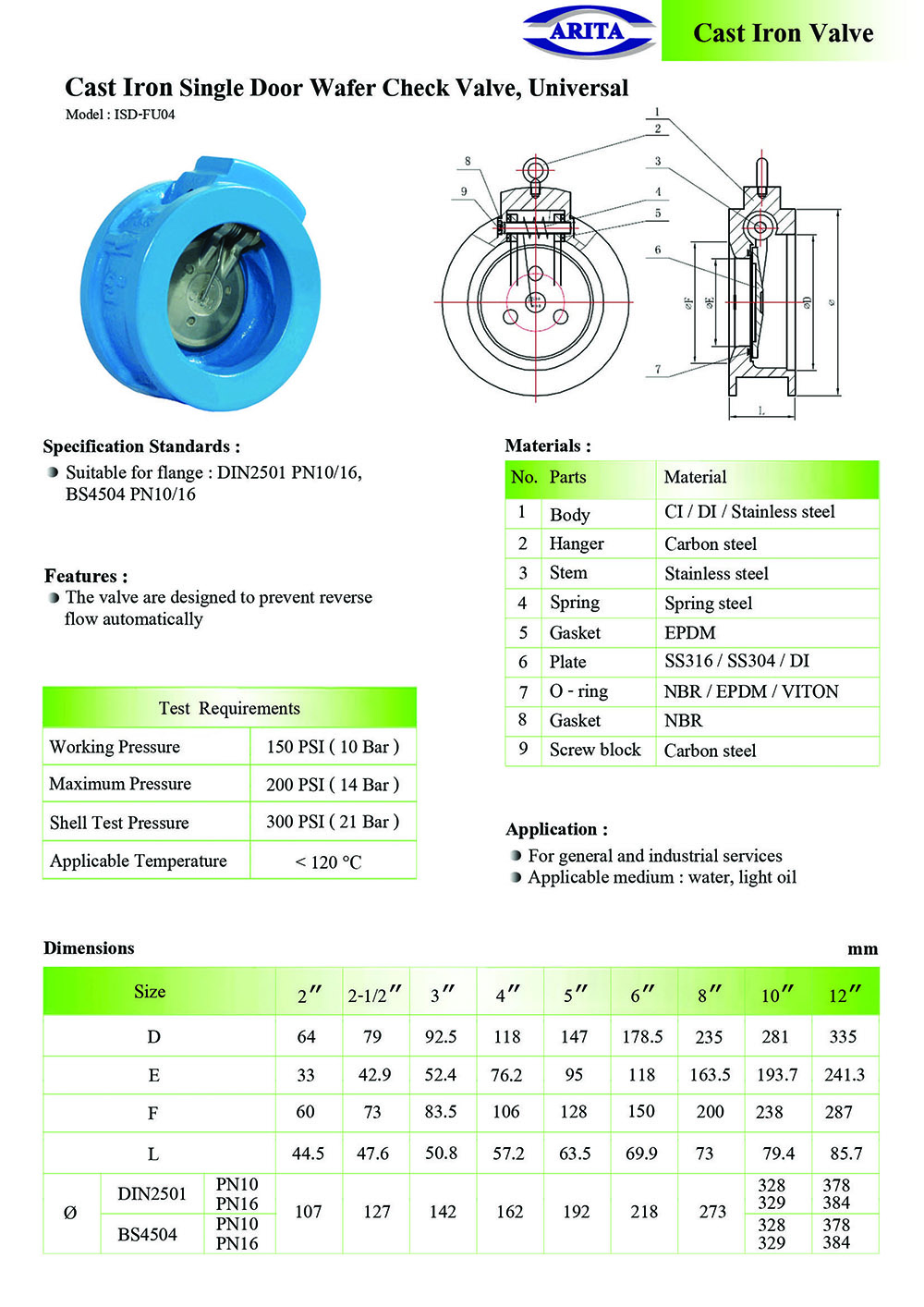 ARITA Cast Iron Single Door Wafer Check Valve, Universal