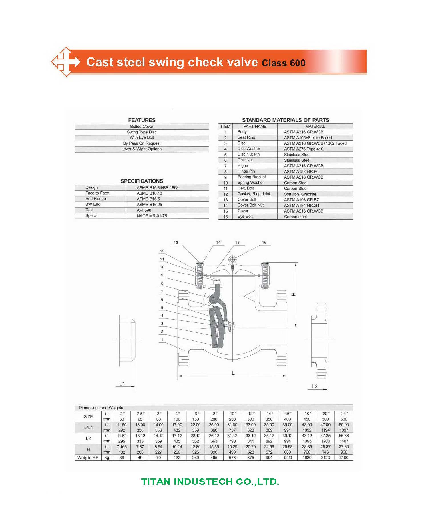 CAST STEEL SWING CHECK VALVE CLASS 600