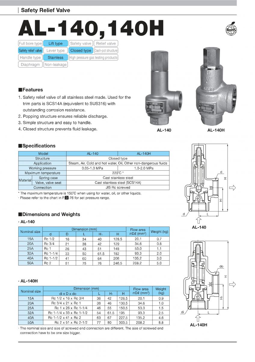 SAFETY & RELIEF VALVE AL-140 STAINLESS STEEL
