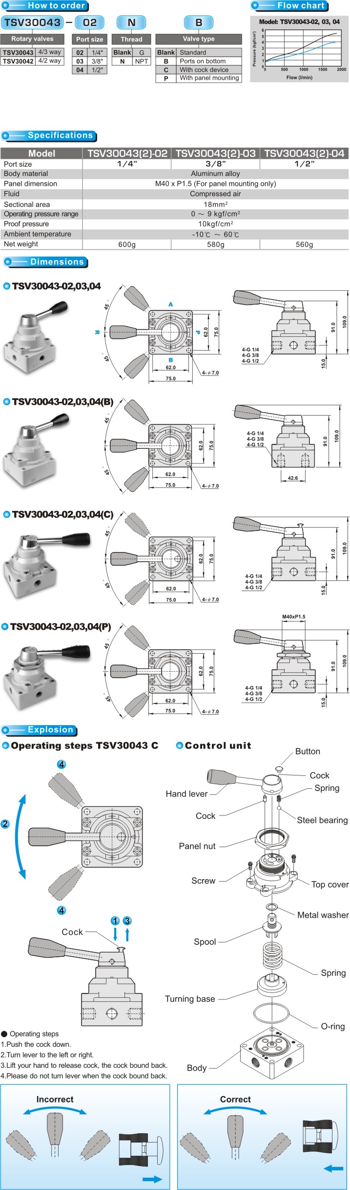 SHAKO 4/2,4/3 WAY HAND LEVER VALVES THV30043