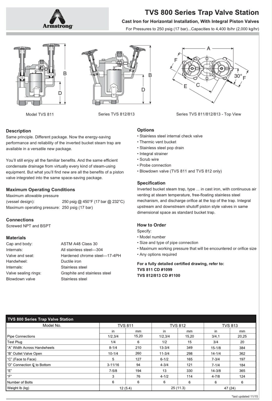 Armstrong Steam Trap Valve Station TVS 812 , 813
