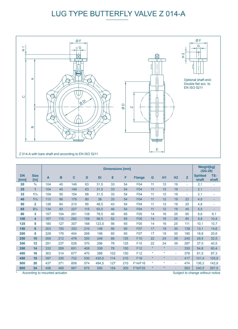 LUG TYPE BUTTERFLY VALVE Z014-A