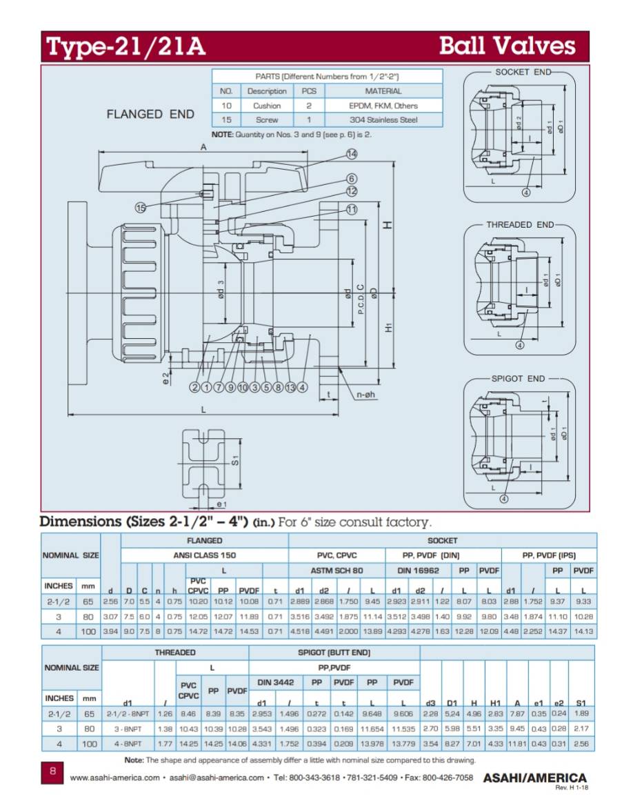 " ASAHI " TRUE UNION BALL VALVE FLANGED