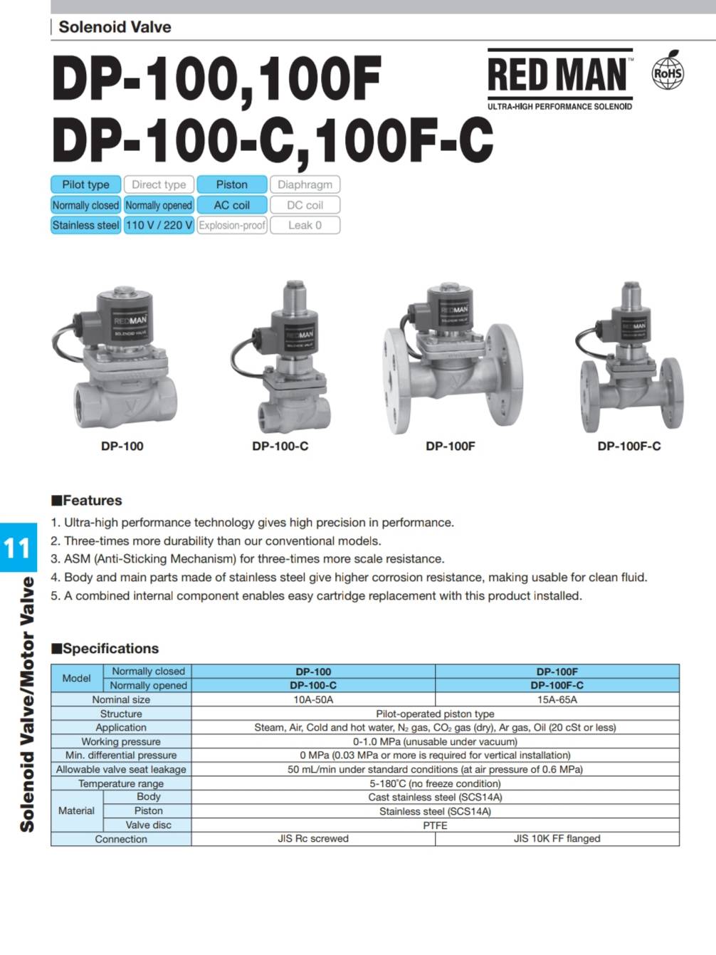 REDMAN Solenoid Valve DP-100-C NO. 220 VAC