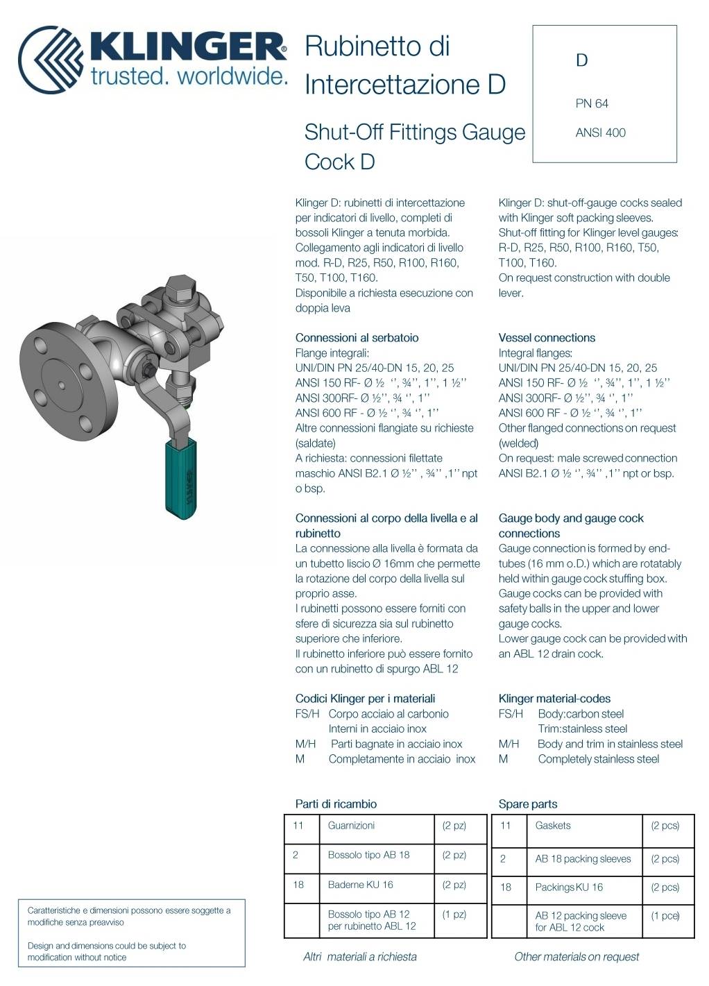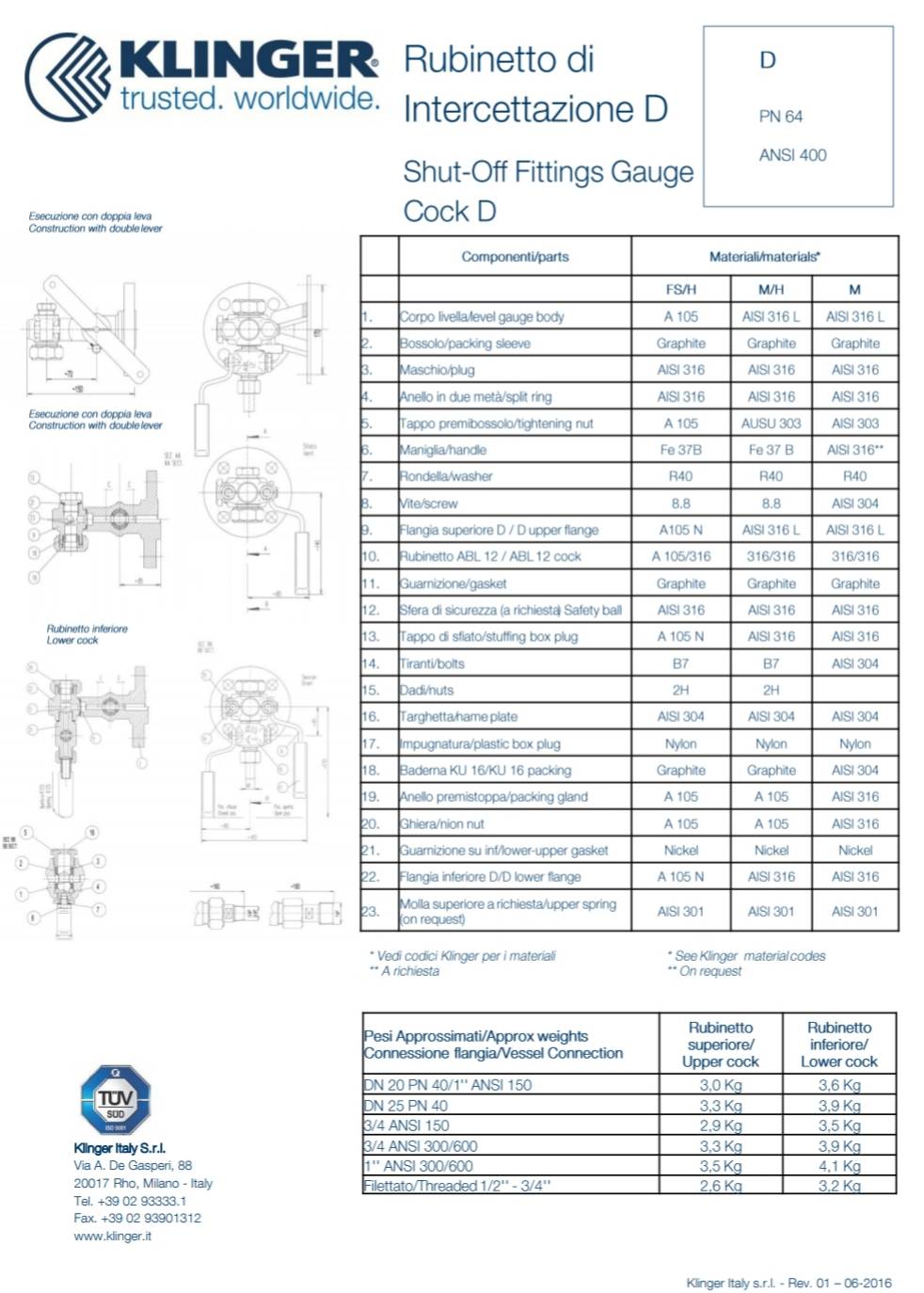 KLINGER Gauge Cock Type D