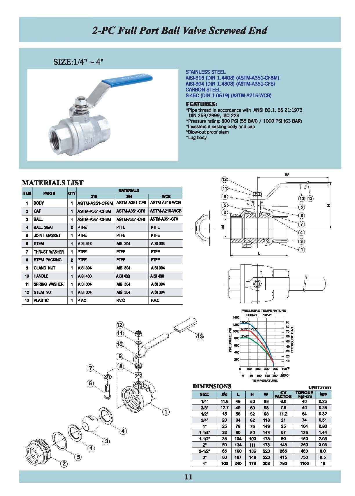 "AVA-SFC" 2-PCS STANLESS STEEL BALL VALVE