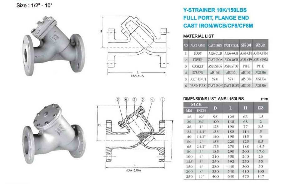 AVA Y-STRAINER STAINLESS STEEL FLANGED ANSI 150
