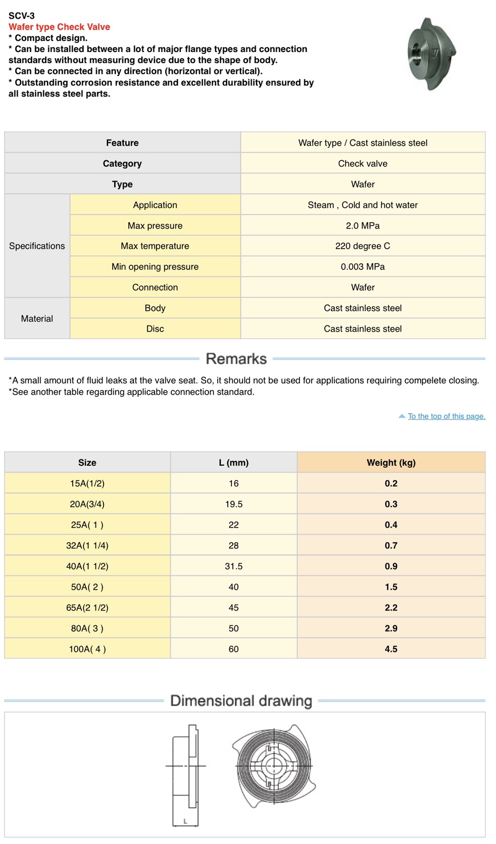 SCV-3 Wafer type Check Valve