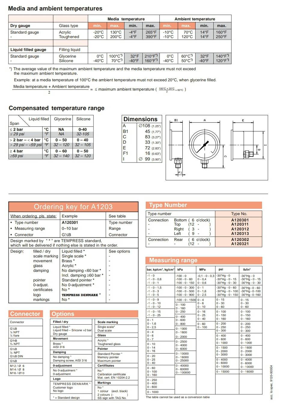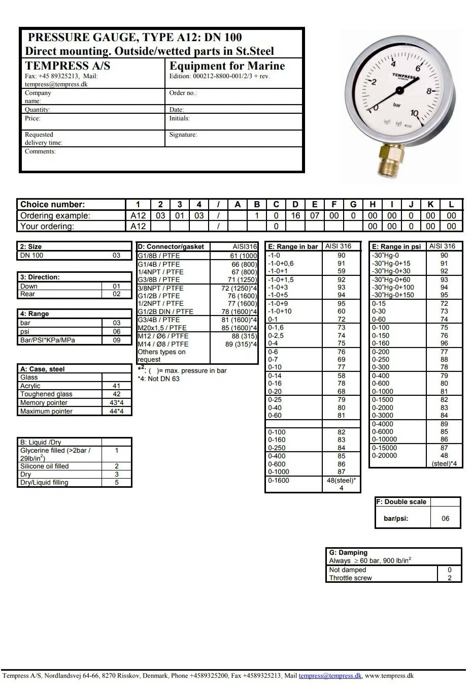 TEMPRESS Direct mount pressure gauge DN 100, Type A1203