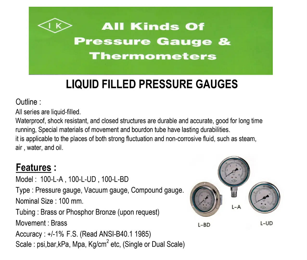 IK PRESSURE GAUGE DS100 (4")