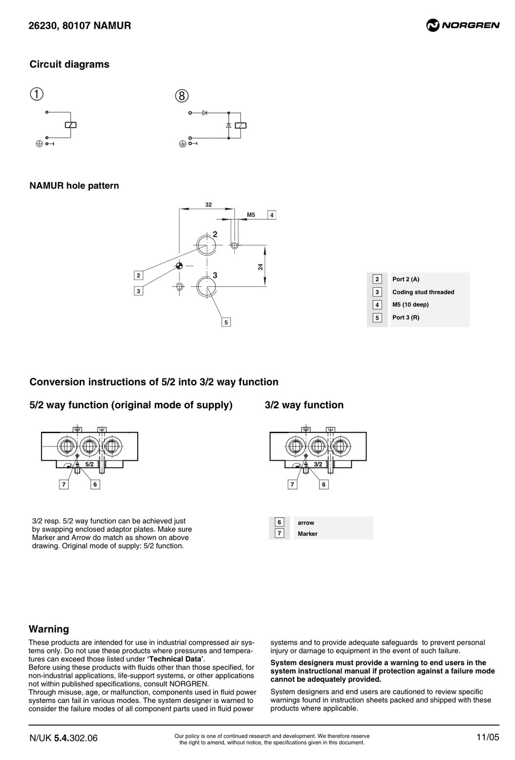 "NORGREN" NAMUR 3/2 , 5/2 SOLENOID VALVE ,973000