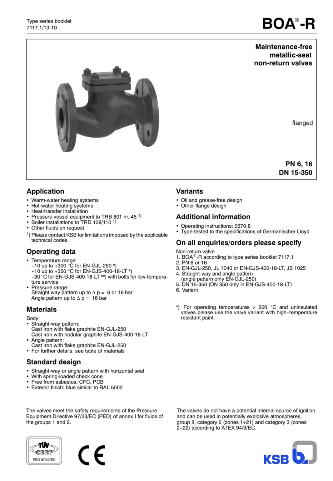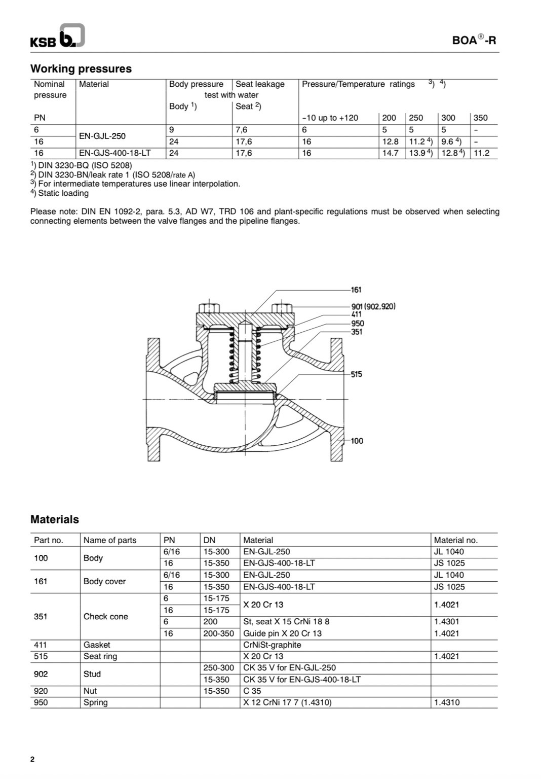 KSB LIFE CHECK VALVE FLANGED PN 16