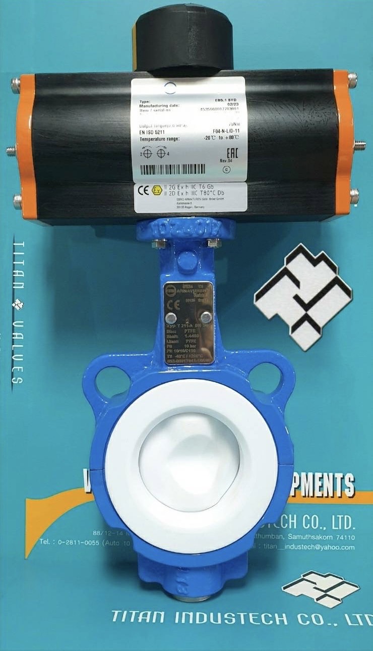 EBRO PTFE-LINED BUTTERFLY VALVE T211-A WITH PNEUMATIC ACTUATOR
