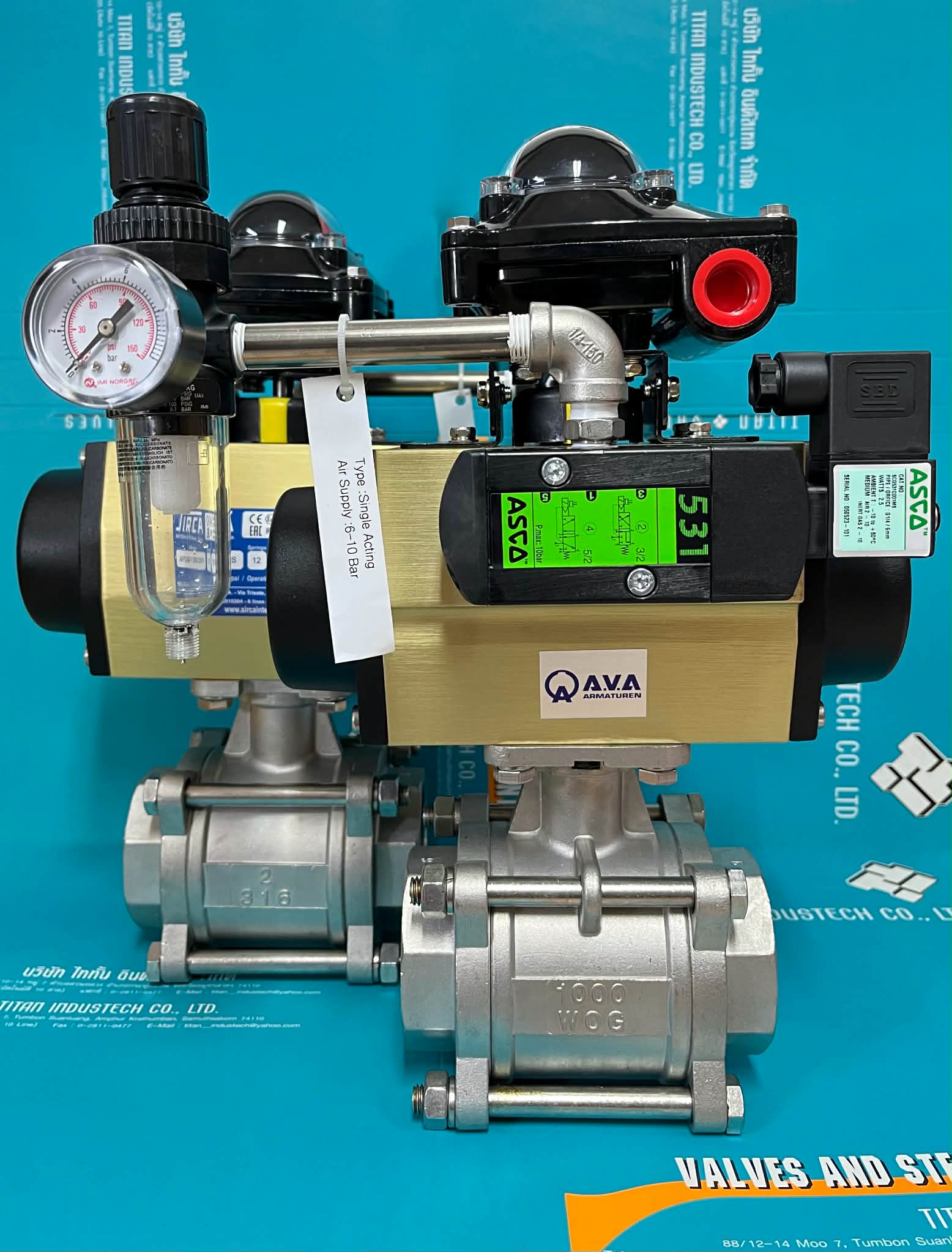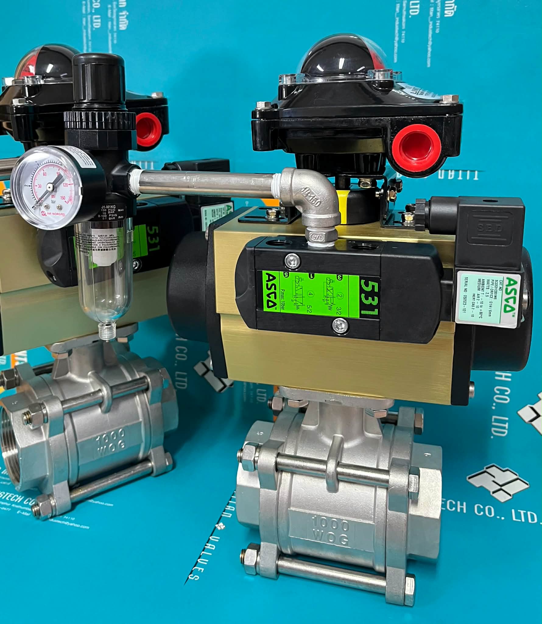 "SIRCA" 3-PCS DIRECT MOUNT BALL VALVE C/W PNEUMATIC ACTUATOR C/W LIMIT SWITCH BOX C/W SOLENOID VALVE C/W AIR FILTER REGULATOR