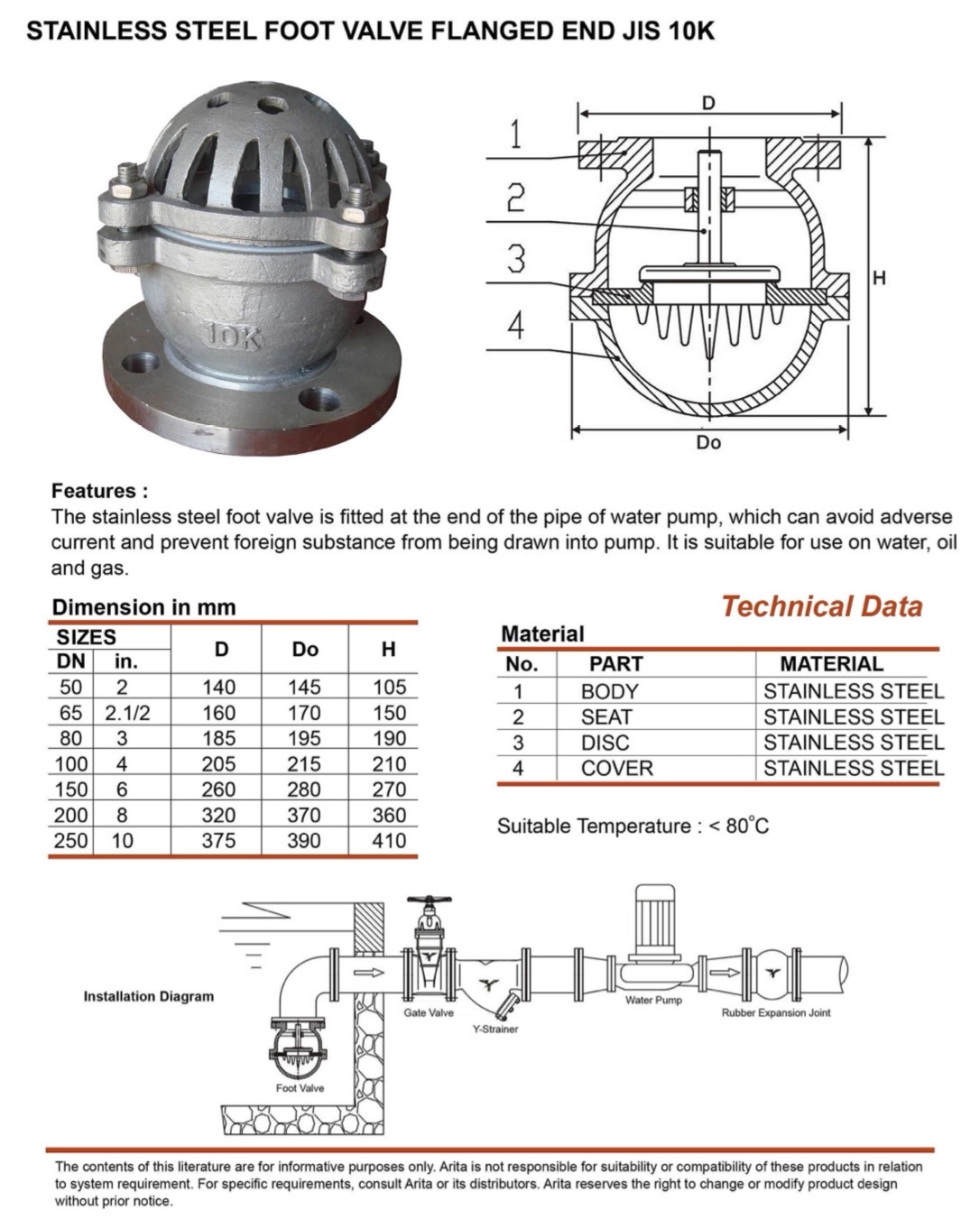 Stainless Steel Foot Valve Flanged End ( หัวกระโหลก )