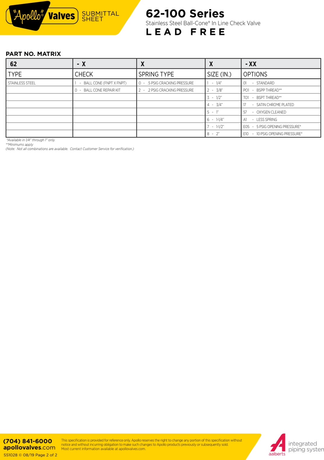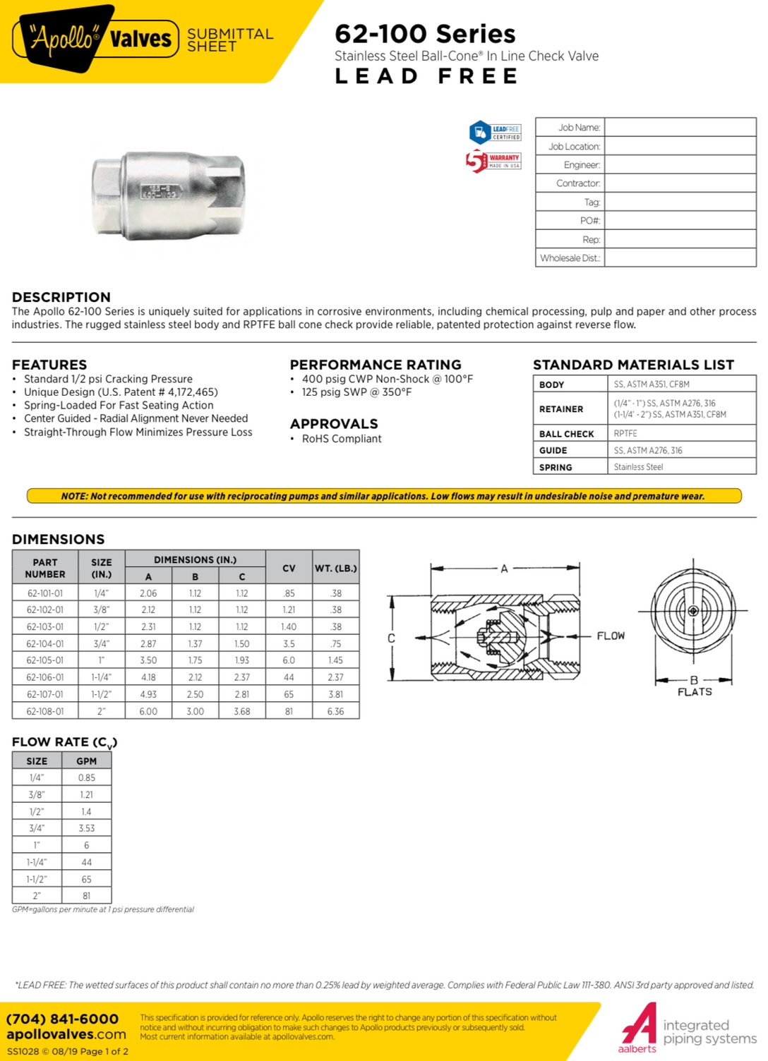 "Apollo" Ball Cone Check Valve Stainless Steel