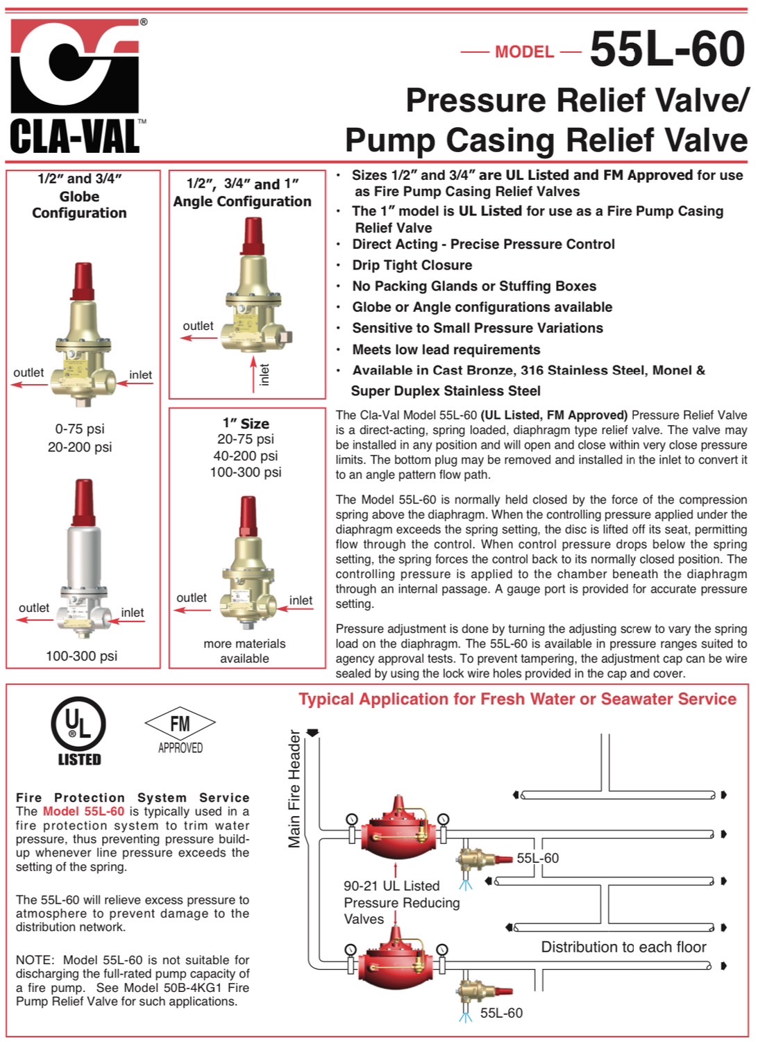 " CLA-VAL " 55L-60 Pressure Relief Valve