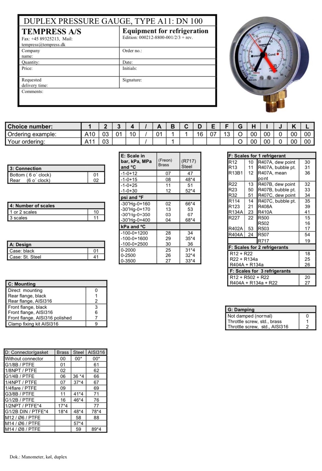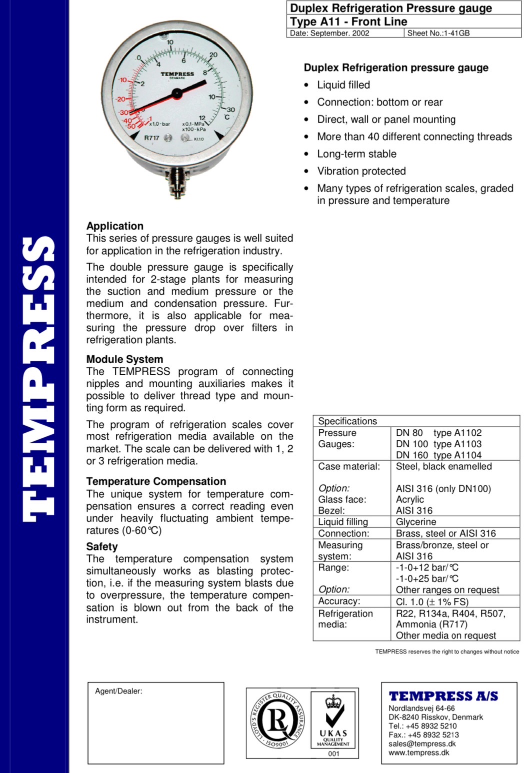 TEMPRESS Duplex Refrigeration Pressure Gauge for R717