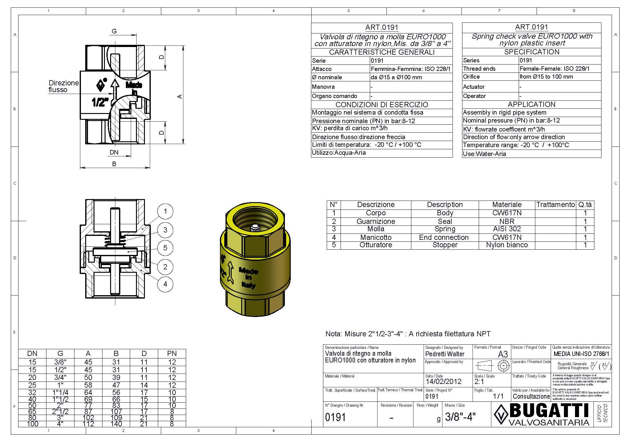 " V-VALVE " SPRING CHECK VALVE , ITALY